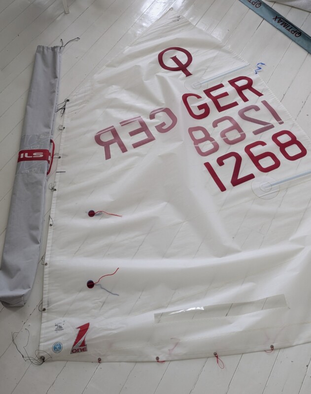Zum Verkauf steht ein OneSails Optimist Segel „Standard Medium“ für ein Seglergewicht von ca. 36–42 kg aus dem Baujahr 2017.