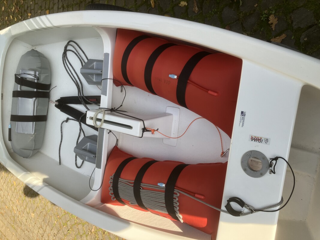 Für die IDJM 2025 wurde dieses Jahr im Mai noch ein neues OneSail Segel gekauft. Alle weiteren Teile sind bei der Ausrüstungskontrolle der IDJM geprüft und vermessen worden. Der internationale Vermessbrief liegt vor.