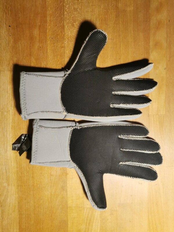 3mm Neopren, halten super warrm. Leider jetzt im Winter schon wieder zu klein, daher ungetragen. Neupreis war 75,99, ich hätte gerne noch 50 Euro.