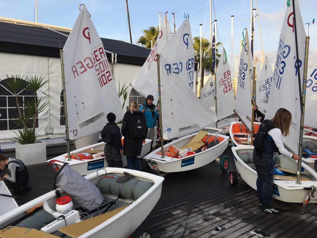 Die TOP 3: EVA SCHAFER RODRIGUEZ/ESP (2,1,1); Paul Mesquida/ESP (1,4,2); Malthe Ebdrup/DEN (5,2,1).Aus Palma erreichte uns dieser Kurz-Bericht: Der Tag begann mit Hektik gegen, 7.30 Uhr waren wir im Hafen. Die Kinder ,unterstützt von Eltern und Trainern, bauten die Segel und Boote auf . Eine Steuermannsbesprechung wie in Deutschland üblich gab es nicht . Austragen, Boote slippen und los ging’s auf Wasser. Gestartet wurde mit Flagge U, es gab viele UFD. Gegen 15.20 Uhr ging’s an Land. Am morgigen Sonnabend ist der Start für 10.30 Uhr geplant.