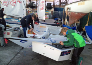 Der Regattatag begann für die Kids um 8.00 Uhr mit dem Aufbauen der Boote. Die 27 Nationen sind in unterschiedliche Parking Areas aufgeteilt, die Optis von Team GER stehen mit Team NED und SUI direkt an der Slip-Bahn. Teambesprechung war um 8.45 Uhr. Danach ging es auf’s Wasser. Der Wind am Freitag: anfangs 12-15 Knoten aus Nordost, danach abflauend und später wieder ansteigend auf 14-18 Knoten, etwas weniger Welle als am Tag zuvor. Rot und Gelb machten 4 Wettfahrten, Gelb und Blau 3. Deutlich im Vorteil waren auch heute wieder die älteren, schwereren Segler. Für die Deutschen lief es in dem international bestetzen Feld gut: Karl Krause liegt mit 9,11,6 (38) auf Platz 21, knapp vor Mic Mohr auf 22 (19,6,2,(29)). Leon Jost folgt auf 26 (17,7,5,(24)). Auf Platz 33 Max Georgi (8,10,14,(15). Diese vier werden ab dem heutigen Sonnabend in der Goldfleet starten. Die Abstände sind sehr gering, daher wird es sehr spannend. An der Spitze Weltmeister Marco Gradoni mit 3 x Platz 1 und einem dritten Platz als Streicher. Hier alle Zwischenergebnisse.