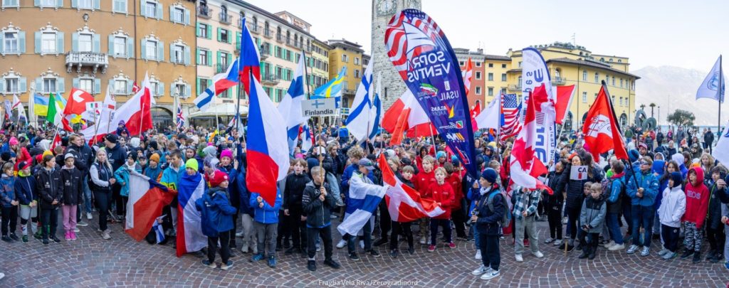 Der Mittwoch klang aus mit einer farbenfrohen Parade der Segler, Trainer und Betreuer durch die Straßen von Riva. Auf dem Rathausplatz gab´s eine feierliche Eröffnungszeremonie. Und seit heute Mittag beginnen die Segelwettkämpfe für alle ….