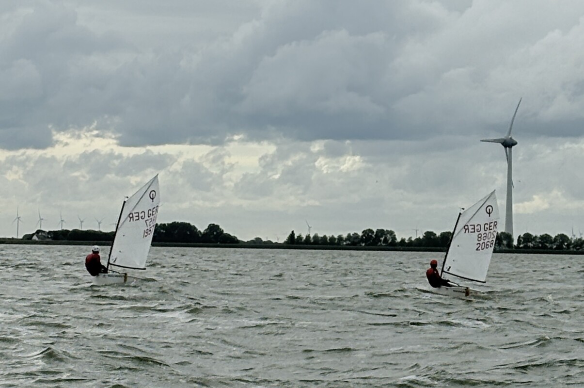 Die Regatta United4 Medemblik II (06.09.-07.09.25) gehört zu der großen niederländischen Regattaserie „United 4“ und richtet sich an Kinder und Jugendliche in verschiedenen Bootsklassen. Der Einladung des Veranstalters nach Medemblik am Ijsselmeer folgten mehr als 300 Teilnehmer in 10 Bootsklassen. Traditionell waren wir Optimisten mit mehr als 130 Booten die stärkste Klasse. Dank der sehr guten Regattaorganisation wurden die Wettfahrten in drei Wettfahrtgebieten ausgetragen. Wir Optis teilten uns die Course Area A mit den Cadets. Ebenso erfolgte täglich eine Einteilung in 2 Fleets (jeweils 67 Boote). Mit Anna, Johannes und mir (Theodor) haben wir die deutsche Opti Gruppe in dieser Regatta gebildet.