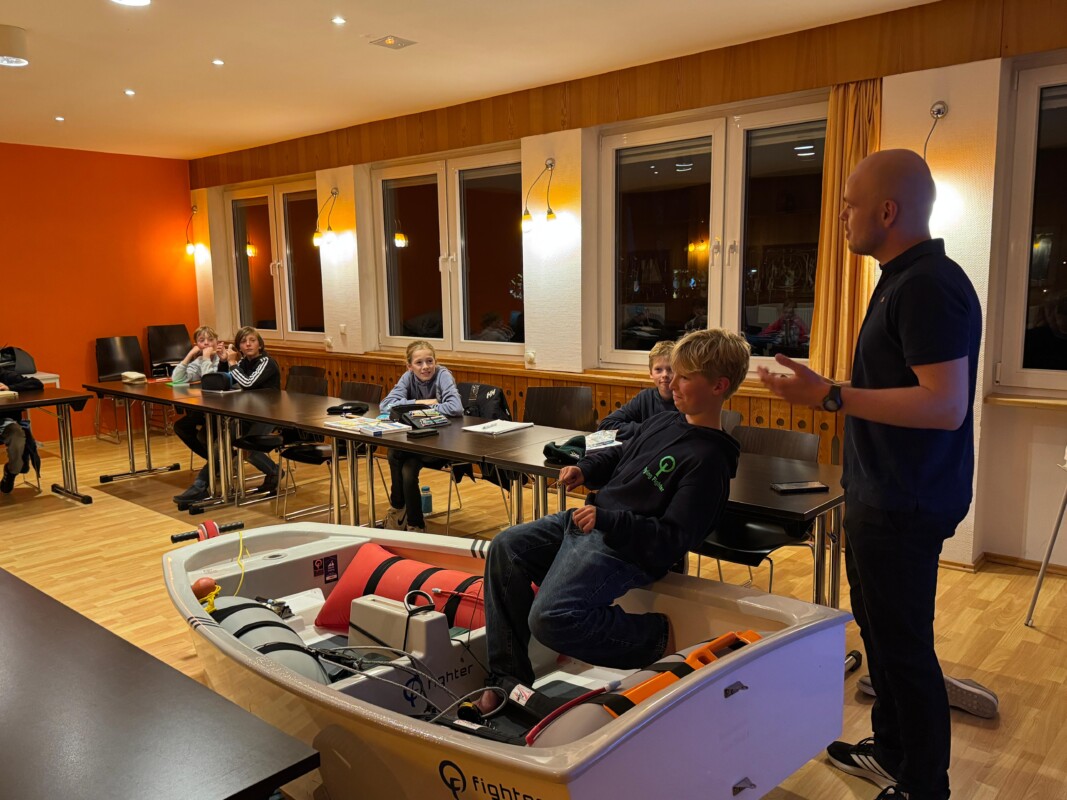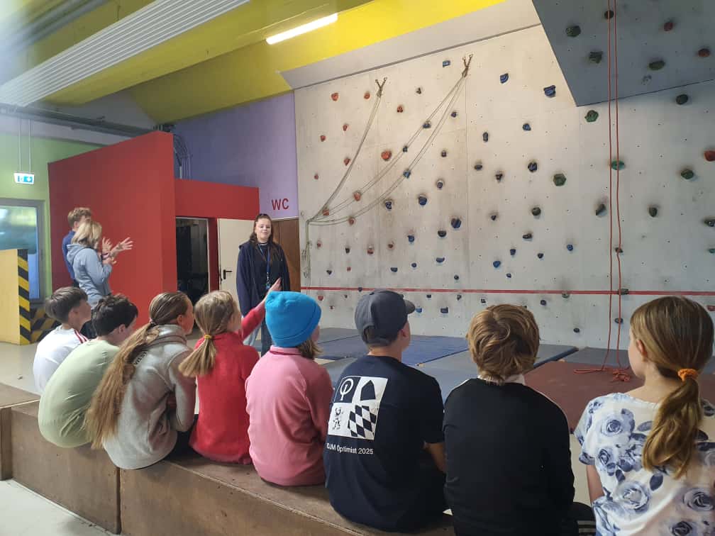 Im Anschluss ging es beim Klettern sportlich weiter. Dort konnten sich alle besser kennenlernen und den Tag aktiv ausklingen lassen. Nach dem Abendessen haben wir den Tag in einer weiteren Theorieeinheit reflektiert und Revue passieren lassen. Zum Abschluss freuten sich alle sehr über die Geschenke des Sailingshops.