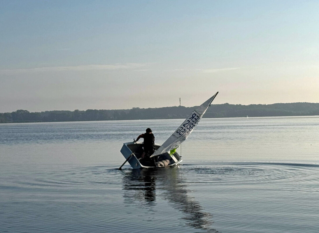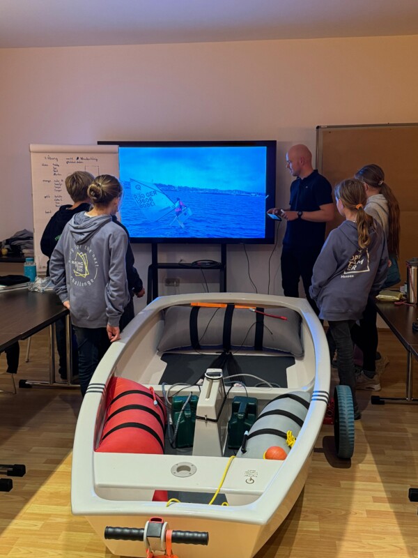 Die erste Einheit auf dem Wasser stand ganz im Zeichen der Wende. Am Vorabend hatten wir bereits eine Theorieeinheit, sodass wir am Freitag pünktlich um 9 Uhr starten konnten. Obwohl nur schwacher Wind wehte, haben wir es ausprobiert und nach zwei intensiven Einheiten schließlich den „Wendenmeister“ gekürt.