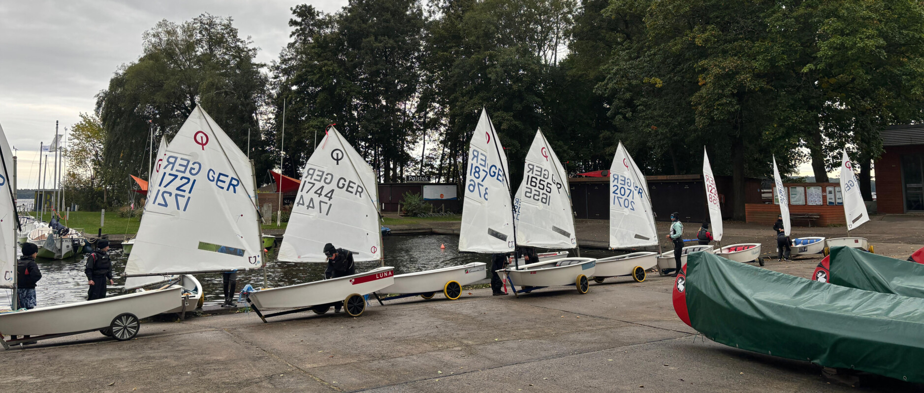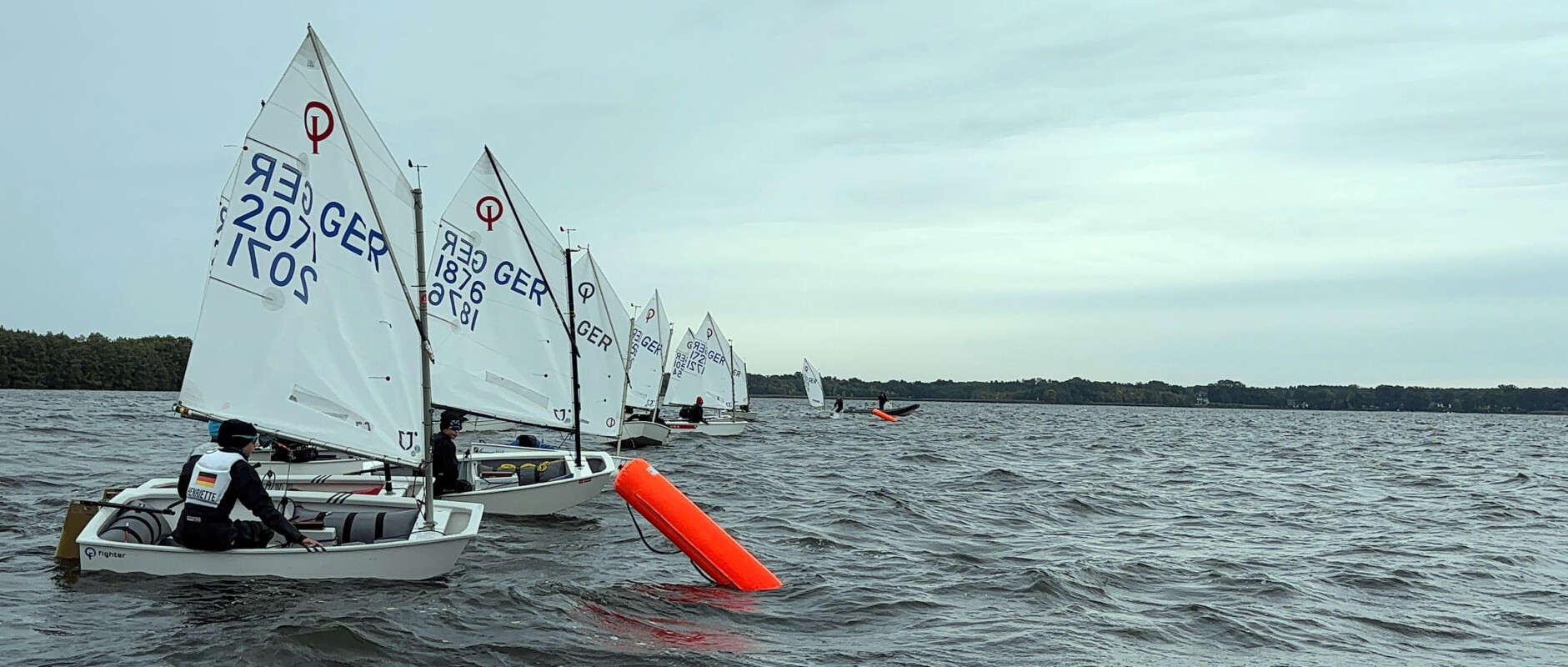 Nach dem Frühstück stand nicht sofort Segeln auf dem Programm, sondern die Zimmerkontrolle. Dann ging ein letztes Mal auf den Wolziger See. Der Wind hatte im Vergleich zu gestern zugenommen und erreichte in Böen bis zu 30 Knoten – ideale Bedingungen, um das Gelernte der letzten Tage unter Beweis zu stellen. In vielen Rennen versuchten alle, so viele Goldpunkte wie möglich zu sammeln.