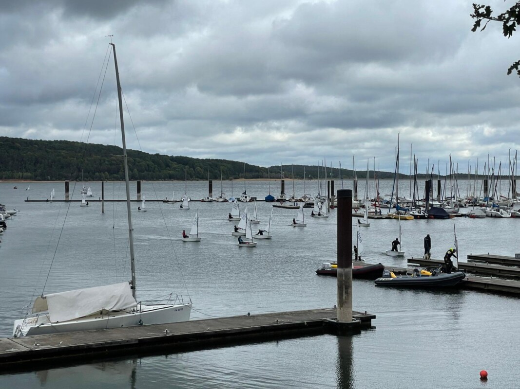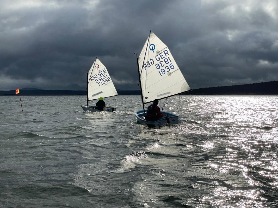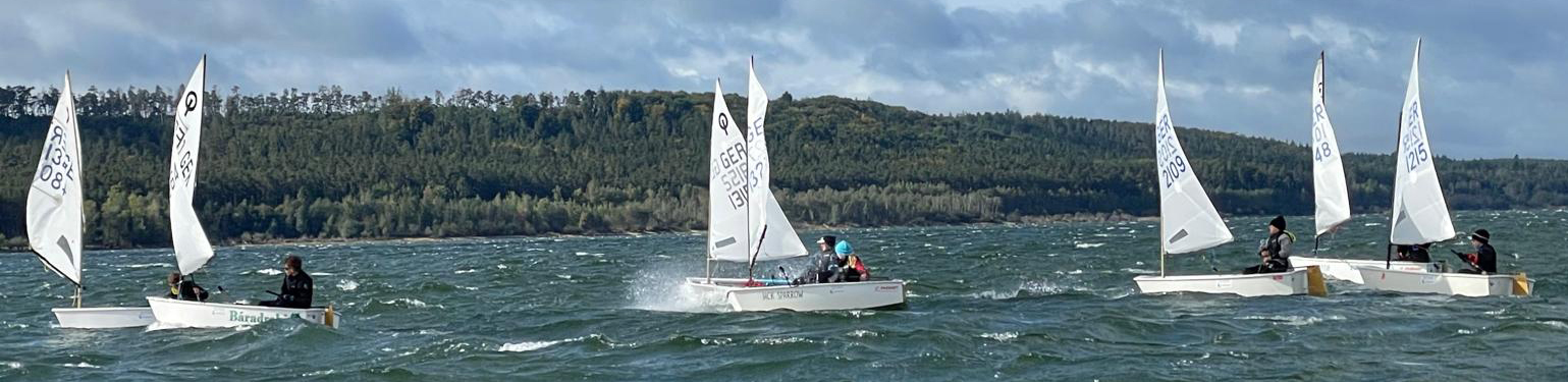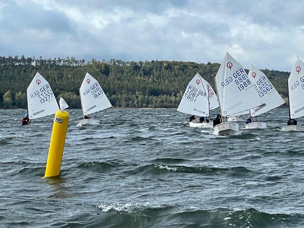 (bmg) „Meine Finger sind so kalt, dass mir das Wasser im See wie Badewasser warm erscheint“, so ein Teilnehmer des TALENT MEETINGS sponsored by sailingshop.de am letzten Trainingstag auf dem Brombachsee. Der Abschlusstag forderte die 37 Optisegler sehr. Es wehte ein Westwind mit 16 Knoten, in Böen sogar mit bis zu 20 Knoten, und der See war aufgewühlt. Mit Wellen von mindestens 0,5 m mussten sich die Akteure auseinandersetzen. Noch einmal segelten sie zunächst in ihren drei Gruppen mit dem Trainer im Kielwasser, der ihnen individuelle Hinweise zum Gewichtstrimm, zur Segelstellung und zur Ansteuerung der Wellen gab. Zum Abschluss stand ein Rennen aller 37 Kinder auf dem Programm. Ziel war der Clubhafen.