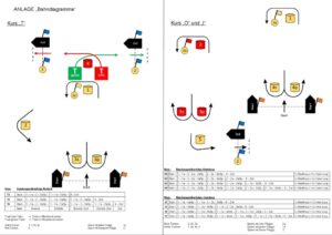 Das Regattasegeln auf diesem geschützten, kleinen Revier hat stets eine ganz besondere Herausforderung – das korrekte Absegeln des Kurses. „Die Kurse werden durch zwei Tafeln am Startschiff angezeigt. Die erste Tafel zeigt den Kurs an, die zweite die Anzahl der Kreuzen. Die genaue Rundungsreihenfolge ist in der ANLAGE „Bahndiagramme“ dargestellt“, ist zu lesen in der Segelanweisung. Also eigentlich kein Problem, oder? Aber es war auch in diesem Jahr wieder anspruchvoll, auch wenn es die meisten meisterten. Das klappte u.a. dank sorgfältiger Vorbesprechung der Trainer. Nur einmal war es brenzlig: der Führende Lars Rohde fuhr falsch, konnte es aber rechtzeitig korrigieren und keiner folgte der falschen Fährte.