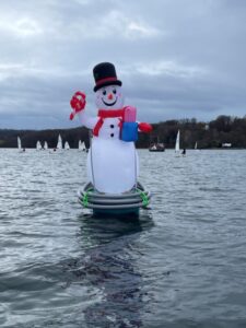 Besonderes Highlight für alle Kids: Die Luvtonne war ein Nikolaus, die Leetonne ein Schneemann. Beide Tonnen sind Smarttonnen. Und so flogen zuweilen ein Nikolaus und ein Schneemann über den See, auf der Suche nach ihren passenden Positionen für den Kurs.