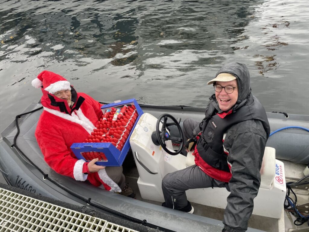 - Der Nikolaus mit Geschenken auf dem Weg zu den Seglern