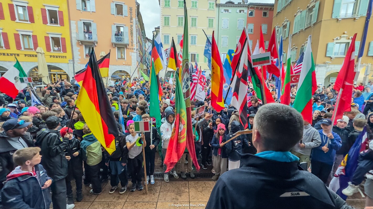 (bmg) 10 Knoten Wind, in Böen bis 15 Knoten – das waren prima Bedingungen beim heutigen 12. Meeting Country Cup zum Auftakt des 44. Lake Garda Meetings 2026. Am Start 38 Optisegler aus 38 Nationen. Der Country Cup bietet ein bisschen Olympia-Feeling, denn pro Nation ist nach dem Reglement nur ein Segler zugelassen. Er wird von seiner nationalen Klassenvereinigung nominiert. Germany vertrat der 11jährige Takeo Korte. Er steht aktuell auf Platz 1 der aktuellen GER U 13-BEST NEXT Rangliste.