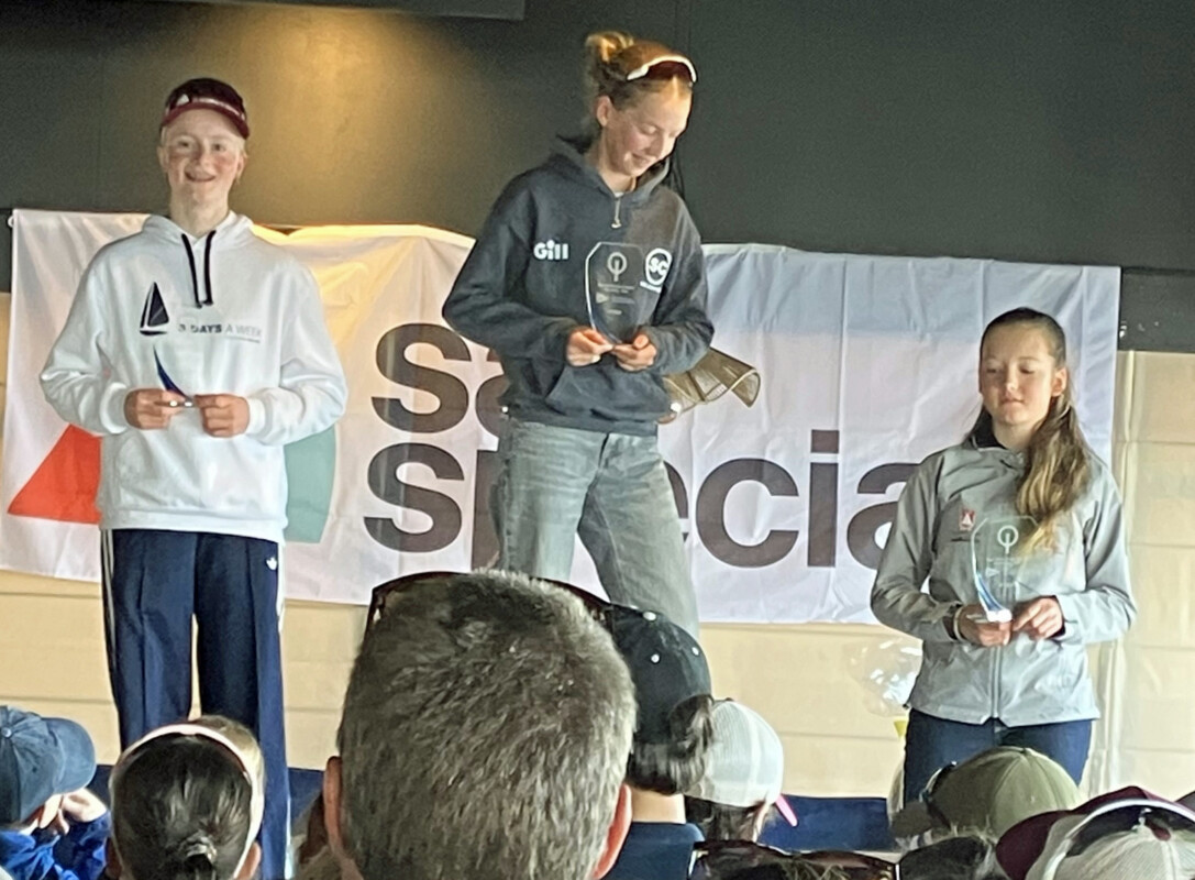 - Siegerehrung MAGIC MARINE EASTER REGATTA – Top 3 Girls: (von links): 2. Benthe van Rooij, 1. Liv Jägers, 3. Sarah Krupp